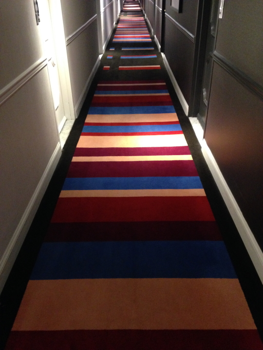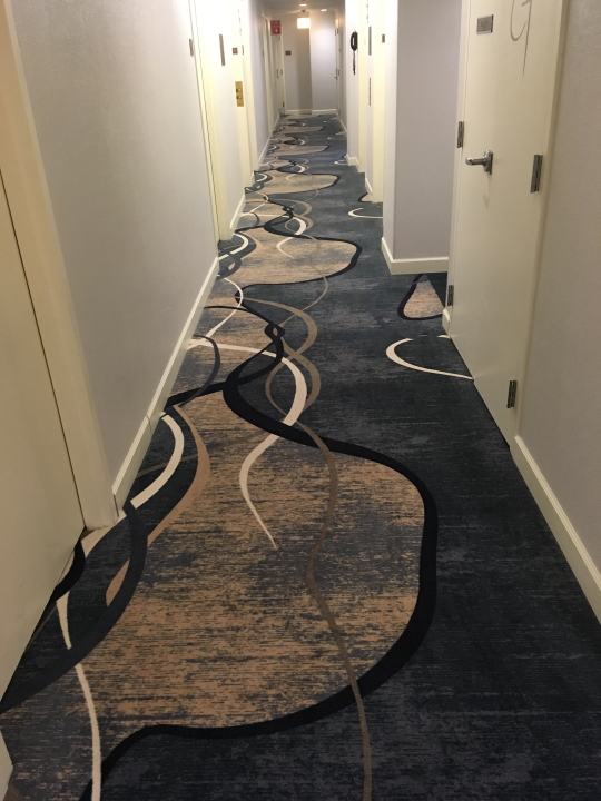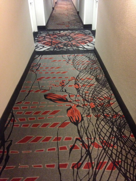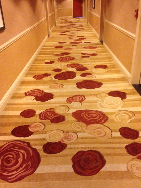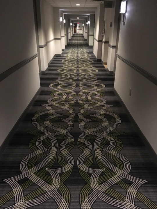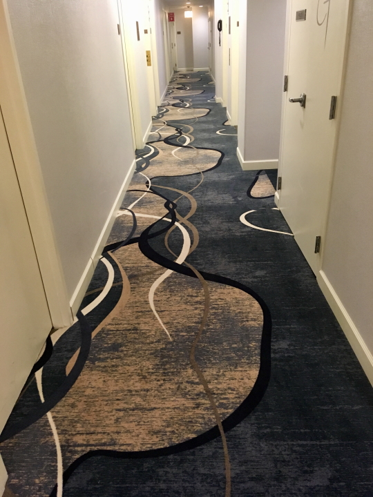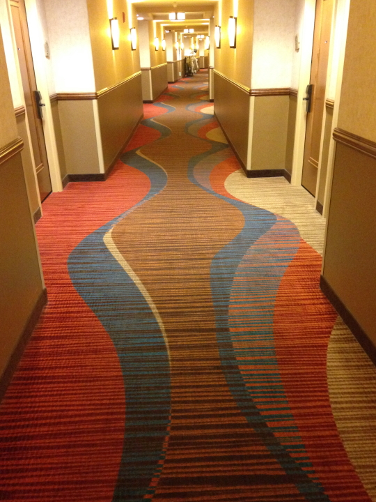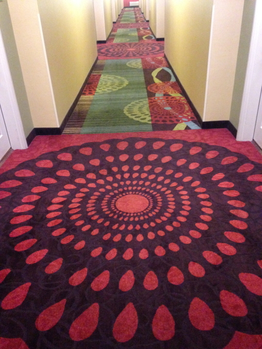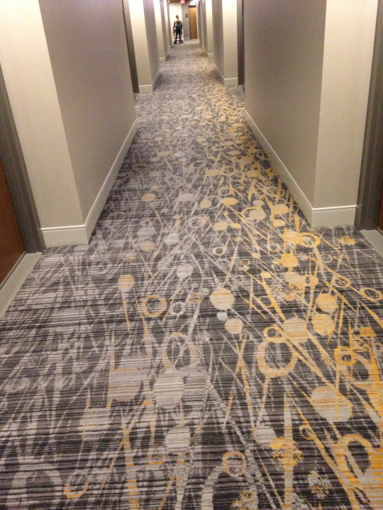 Other than the time spent on stage playing music--about 1/20 of the day--touring is a disorienting experience what with the flying and driving and checking in and out of hotels. Hospitality carpeting design adds some extra special wackiness. Scroll through these and get a feel for being on the road...