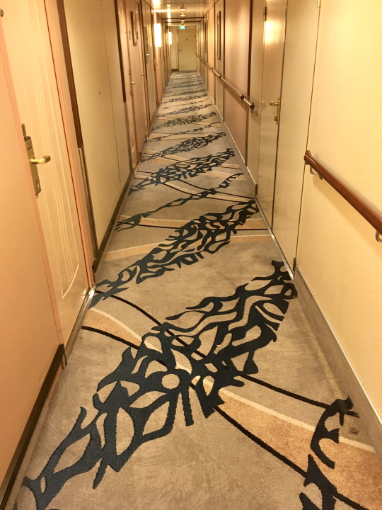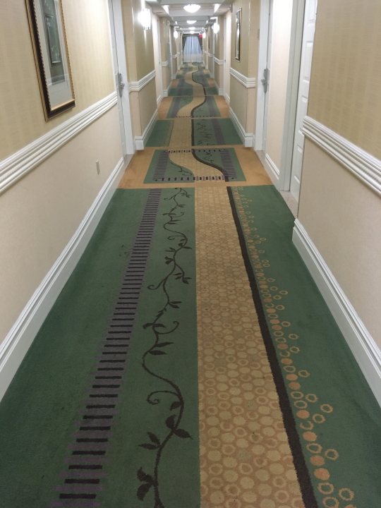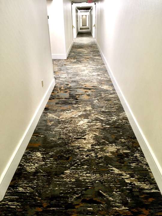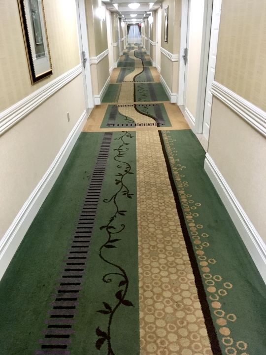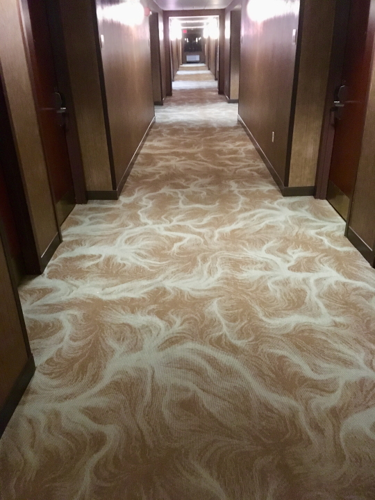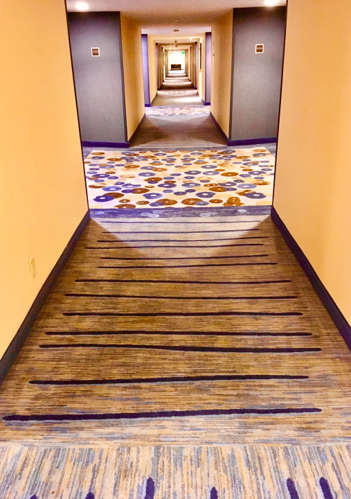 A few years ago while on tour with The Motels, I began taking photographs of hotel room sinks--but after a dozen identical ones I lost interest. Not so with hotel corridor carpets. There are many styles, all designed under the category of Hospitality Carpet. The first in this series was taken July 12, 2017 in Wawatosa, WI; the last one on board the Explorer of the Seas cruise ship in Miami March 8, 2020 just as the Coronavirus was showing up.